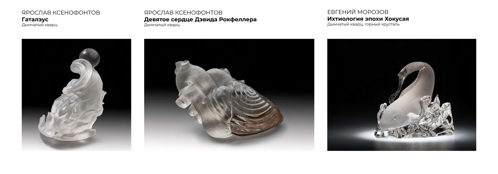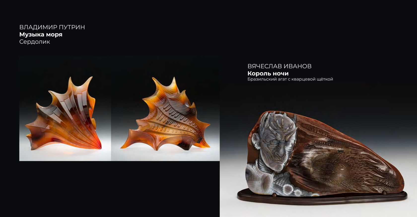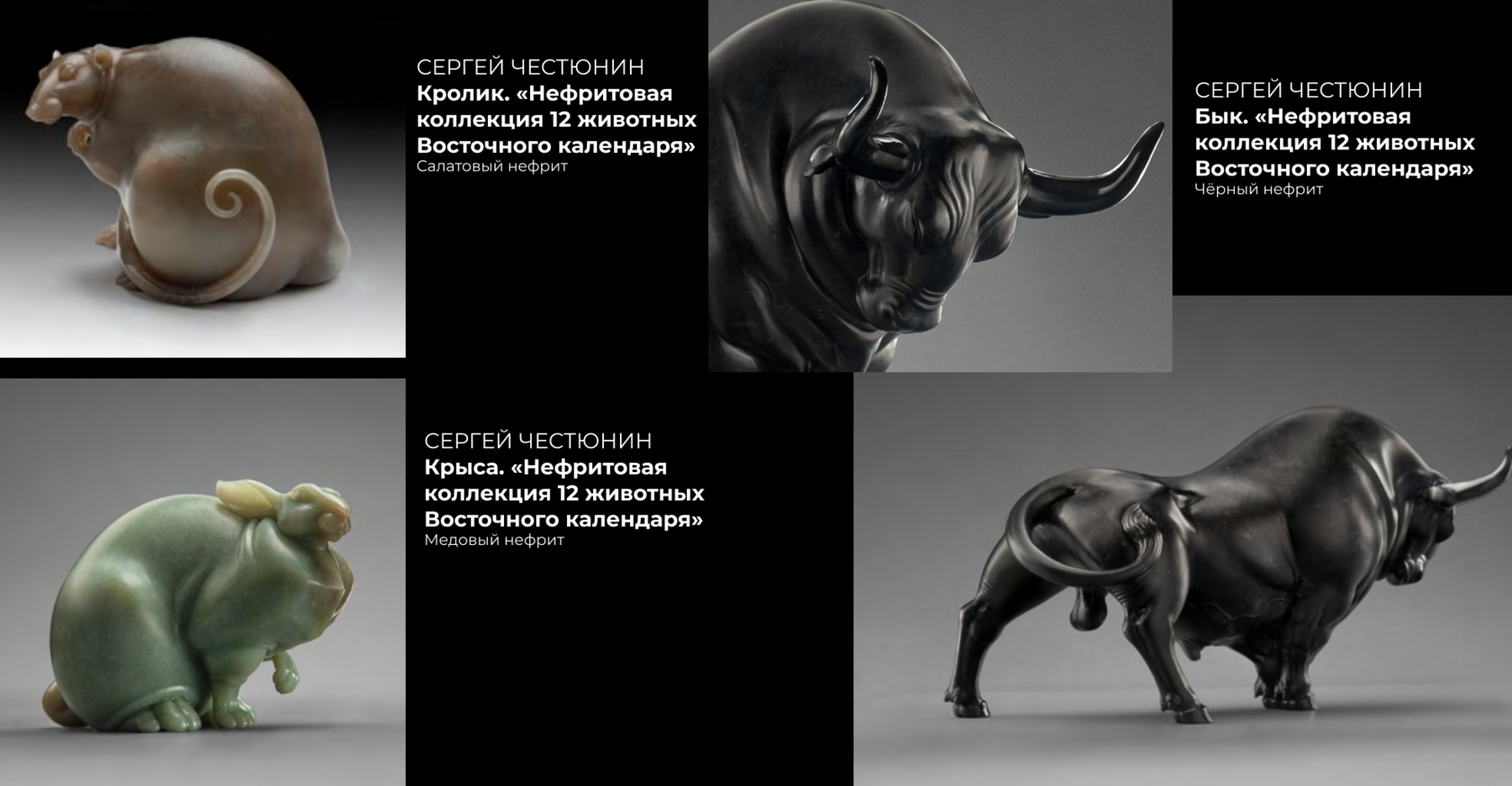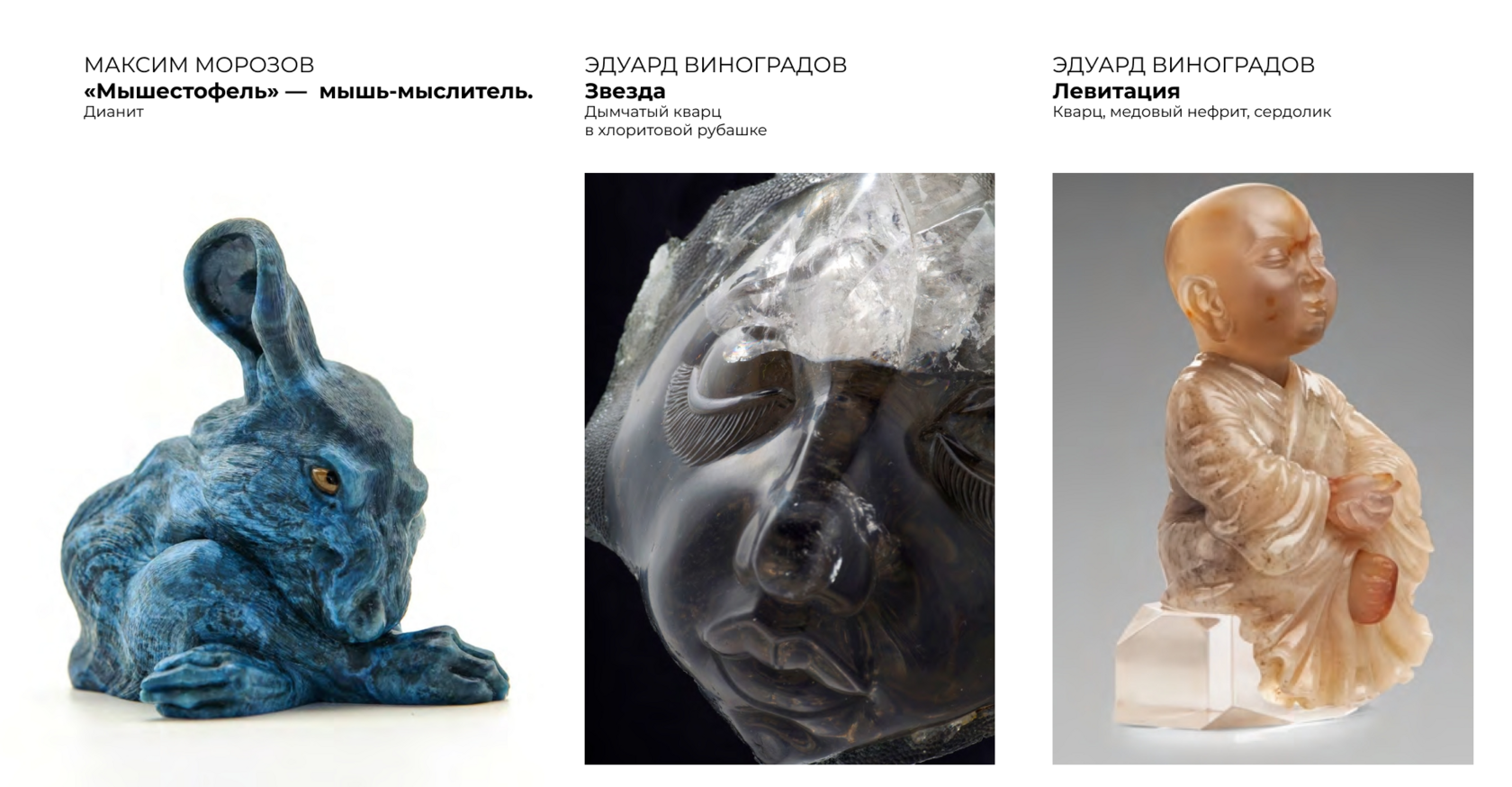 — Продолжаю собирать современное камнерезное искусство. Это работы тех же мастеров, что выставлены в Эрмитаже: Евгения Морозова, Геннадия Пылина, Сергея Шиманского, Эдуарда Виноградова, Сергея Честюнина, Ярослава Ксенофонтова, Вячеслава Иванова, Алексея Кузнецова, Максима Морозова, Антона Ананьева, Сергея Фалькина, Владимира Путрина. Сейчас в нашей коллекции около 80 экспонатов.