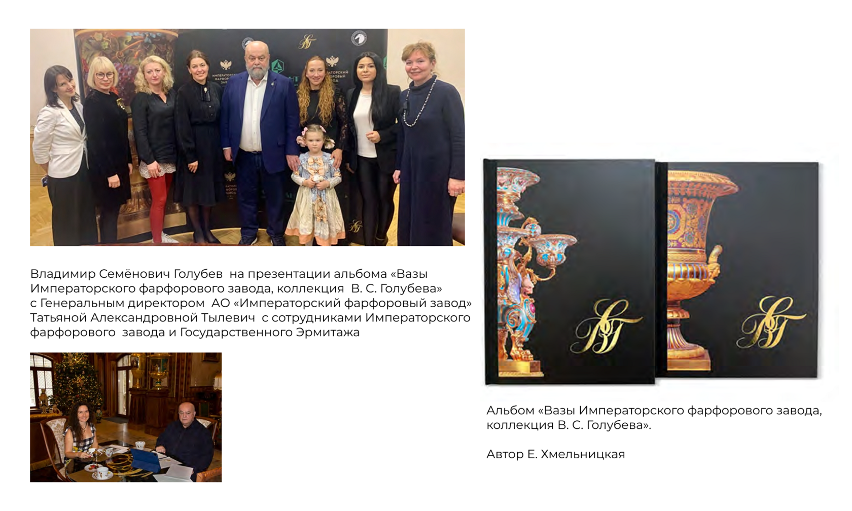Доверяю мнению Юрия Ханина, очень сильного реставратора, человека с большим кругозором, прожившего интересную жизнь, связанную с фарфором и стеклом. Его советы очень стоящие. Ценю общение с Екатериной Хмельницкой. Она удивительная девушка и очень серьёзный эксперт. Мне импонирует, что она очень много учится и постоянно повышает уровень знаний. Я начал общаться со многими музе - ями уже как коллекционер, который что-то сумел создать в этой жизни. Я многое видел, многое держал в руках, поэтому научился понимать кое-что. Зачастую визуально могу определить подвергался ли предмет реставрации или постороннему вмешательству. На основании своей коллекции и совместно с ведущими экспертами мы создаём каталоги. Я делаю это в образовательных целях, потому что такие книги являются научной базой для институтов и музеев. Мы рассылаем эти издания по музеям не только России, но и мира, чтобы сделать информацию доступной.
